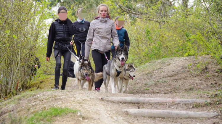 Viens découvrir l'univers des huskys en te promenant avec l'un deux qui te tractera via un baudrier relié à une laisse.